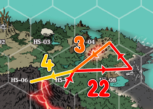 Les baleines n'ont pas l'air d'avoir pourri en une semaine. Plus haut sur la plage, du sable a été retourné en direction de la jungle, et un arbre a été abattu, probablement par un Ogre. Non loin, Loathe trouve un bout de tissu mauve, qui aurait pu appartenir aux aventuriers. La piste remonte vers HS-04. On suit la piste.